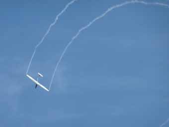 | 9:42頃,グライダーデモフライト ピラタスB4-PC11 青空の下,とても優雅で華麗な飛行でした! |